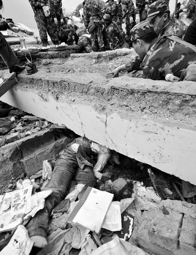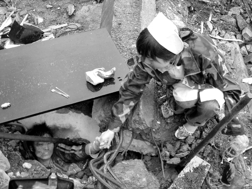 武警戰(zhàn)士在搶救受災(zāi)學(xué)生