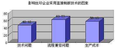 “引進(jìn)直接制版設(shè)備的影響因素”的調(diào)查結(jié)果表明,48.12%的企業(yè)認(rèn)為直接制版的技術(shù)問題是關(guān)鍵,63.23%和50.16%的企業(yè)認(rèn)為直接制版的成本以及與其他生產(chǎn)流程兼容與否是主要原因。(如下圖所示)