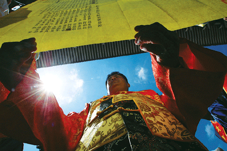 昨日上午,4300多人的臺灣媽祖聯(lián)誼會大型進香團與在大陸的2700余名臺商、臺胞,以及當?shù)孛癖、游客共一萬余人,聚集在福建莆田湄洲島的媽祖祖廟,舉行謁祖進香祭祀大典。這是迄今為止規(guī)模最大的臺胞到大陸進香交流活動。