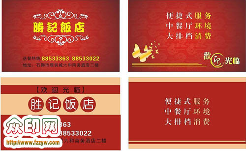 福州飯店名片制作 福州彩印廠 彩印公司