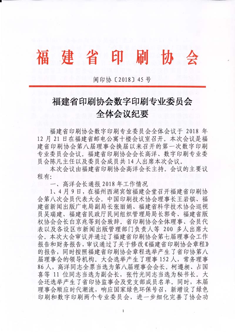 福建省印刷協(xié)會數(shù)字印刷專業(yè)委員會全體會議紀(jì)要