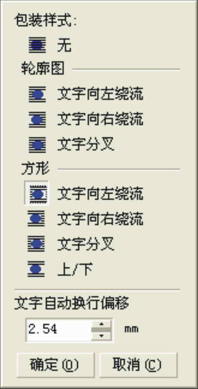 插入圖片到文字中的工作非常簡單,只需要選中要插入的圖片,在格式工具欄上的“段落文本繞圖”中設(shè)定一下即可。在該工具中,CorelDRAW為我們提供了豐富的文本繞圖功能,可以將圖片或左或右、或上下或四邊圍繞等等,如圖。