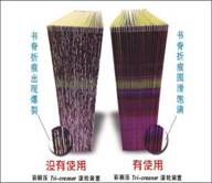 爆色(如圖1)現(xiàn)象 。和傳統(tǒng)的書脊壓痕系統(tǒng)不同,特麗寶采用了【膠壓鐵】原理來(lái)壓痕,避免使用傳統(tǒng)的【鐵壓鐵】方法,減輕過(guò)大壓力,從而解決爆色的問(wèn)題。