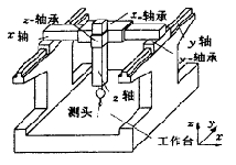 三坐標測量機的動態(tài)誤差主要是由各構件繞氣浮導軌連接處的偏轉和各運動構件本身的彎曲變形造成的。當測量速度較低時,這一誤差往往很小,可以忽略不計。當測量速度較高時,尤其在高速掃描測量中,這一誤差對測量結果影響較大。在對動態(tài)誤差的實驗研究中,往往測量各構件繞氣浮導軌連接處的偏轉角誤差是比較容易而且可行的。各構件的動態(tài)偏轉誤差綜合起來,成為測頭位置處的動態(tài)位移誤標測量機坐構,得到動的具體結差。因此,要針對三態(tài)偏轉誤差和測頭處的動態(tài)位移誤差的轉換關系。運用本文提出的方法,可以方便地估計三坐標測量機動態(tài)誤差的大小。在三坐標測量機的設計和測量方案的優(yōu)化中都有很大作用。