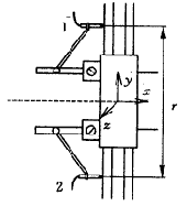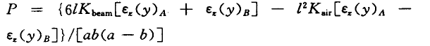 由于三坐標測量機具體結構和運動的復雜性,在運動過程中的慣性力的大小是很難確切知道的,所以要通過其它的途徑來解決這一問題。當橫梁沿y軸運動時,動態(tài)偏轉誤差是繞z軸的偏轉角,可以用εz(y)來表示。從理論上可以證明,在氣浮導軌力矩剛度和橫梁彎曲剛度已知的情況下,只要測量出氣浮導軌滑架A、B兩點的偏轉角誤差,就可以得到測頭位置處的動態(tài)位移誤差。