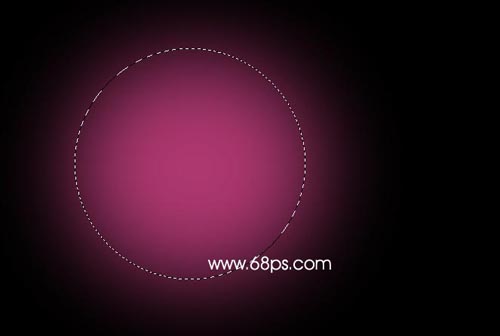 1.新建一個(gè)670px * 450px的文件,背景填充為黑色,新建一個(gè)圖層用橢圓選框工具繪制一個(gè)正圓,然后按Ctrl + Shift + D 羽化數(shù)值為45,填充顏色:#AD386F,效果如圖1