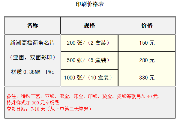 福州高檔商務(wù)PVC名片報(bào)價(jià)