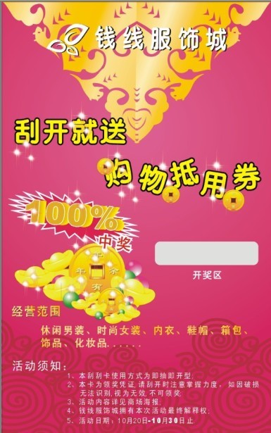 有獎刮刮卡是將獎項名稱直接印在卡面上,并在相應(yīng)位置用刮刮銀油墨將其遮蓋,消費者只要刮開此區(qū)域即可知道中獎與否,使用方便,給消費者帶來的觸動也是非常直接的。 為了防止不法分子偽造刮刮卡,經(jīng)我公司處理的卡一般會在表面增加防偽功能,增加驗證密碼等,這樣,通過較低的成本,就能使其他偽造成為不可能。 剝剝卡是另一種形式的即開型兌獎卡,它的加工藝有別于刮刮卡,需要將其表面剝開,類似揭開式防偽標(biāo)簽。 采用刮刮卡、剝剝卡來促銷企業(yè)的產(chǎn)品和服務(wù),這種國際流行的營銷方法,已經(jīng)在中國大陸逐步推廣。許多著名品牌、著名廠商均委托我公司制作。