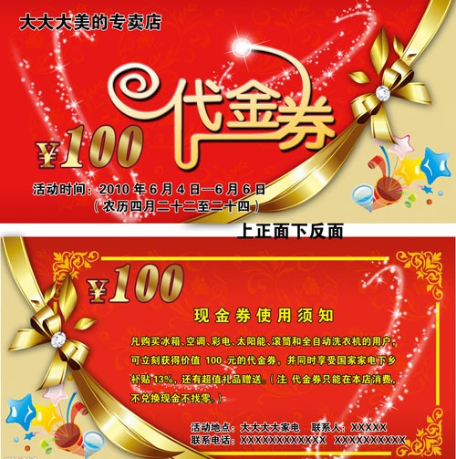 本文標(biāo)題:電器店代金券,空調(diào)促銷抵用票設(shè)計(jì)印刷