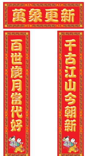 印刷品的生產(chǎn),一般要經(jīng)過原稿的選擇或設計、原版制作、印版曬制、印刷、印后加工等五個工藝過程。也就是說,首先選擇或設計適合印刷的原稿,然后對原稿的圖文信息進行處理,制作出供曬版或雕刻印版的原版(一般叫陽圖或陰圖底片),再用原版制出供印刷用的印版,最后把印版安裝在印刷機上,利用輸墨系統(tǒng)將油墨涂敷在印版表面,由壓力機械加壓,油墨便從印版轉移到承印物上,如此復制的大量印張,經(jīng)印后加工,便成了適應各種使用目的成品。。春聯(lián)也叫“春貼”、“對聯(lián)”等。它以工整、對偶、簡潔、精巧的文字描繪春節(jié),抒發(fā)美好愿望,是中國特有的文學形式。