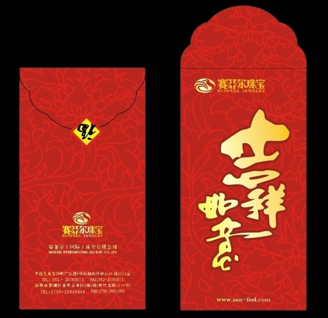 紅包袋是包著金錢作為紅包送人的包裝封套,粵語稱利市封。相傳送紅包的習(xí)俗,在很久以前就流行。紅包袋在唐代時已經(jīng)出現(xiàn),當(dāng)時是用手工織的布袋做“封面”,僅限于宮廷及官方使用,民間則以寓意吉祥的鮮紅色紙,包著一張寫滿祝福字句的字條,送給親朋好友,以表心意。到了三百年前的清代,人們則改用一張大約是正方形的紅紙,包裹銅錢或銀錢,封作“利市”。而第一代的印刷紙質(zhì)紅包袋,約于1900年,印刷術(shù)開始廣為所用時,才得以問世。當(dāng)時的所謂紅包袋,做法非常簡單,只以紅紙印上黃油,再于未干的黃油上綴上金粉,效果就如現(xiàn)今燙了金字的紅包袋般,而圖案則多以簡單為主,再配以吉利的字句。