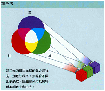 光的三原色?捎眠@三色合成人眼可見的大部分顏色。