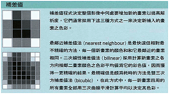 當所要求的分辨率比掃描機的光學解像度更高時,便要插值軟件提高其分辨率,但事實上過度的插值之結(jié)果是模糊和失真,以及浪費硬碟空間。