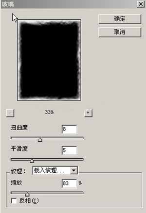執(zhí)行菜單:濾鏡/扭曲/玻璃濾鏡,在紋理欄里選擇載入紋理,然后在對(duì)話框里選擇我們剛才保存的clouds.psd文件。
