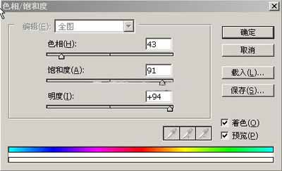 選擇“編輯/調(diào)整/色相與飽和度”具體設(shè)置如下,使紙張呈淡黃色: