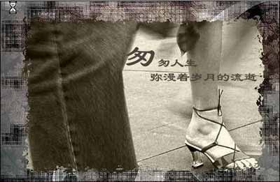 打開一幅圖形,并且進(jìn)行復(fù)制,然后在按住CTRAL鍵的同時(shí),單擊斑駁層,使圖形被選中,執(zhí)行“ 編輯/粘貼入”命令,然后加入文字等,最終得到的斑駁效果如下: