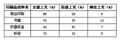 表1 全部上光、局部上光和網(wǎng)紋上光3種主要上光方式各自所占的比例